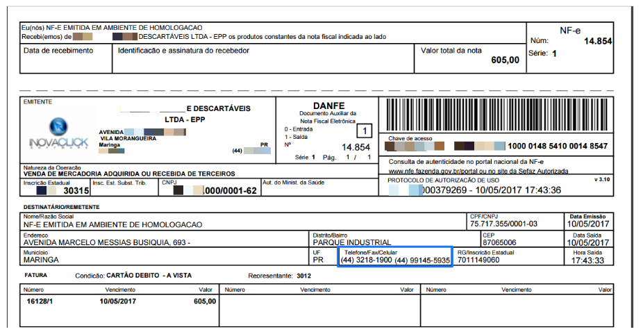 Correção no campo número telefone da danfe. Correção no campo de Telefone/Fax/Celular do destinatário na DANFE. Os números de telefone comercial e telefone celular devidamente cadastrado no cadastro de pessoas, ao faturar o pedido são informar na DANFE corretamente. Referente a OS 19116.