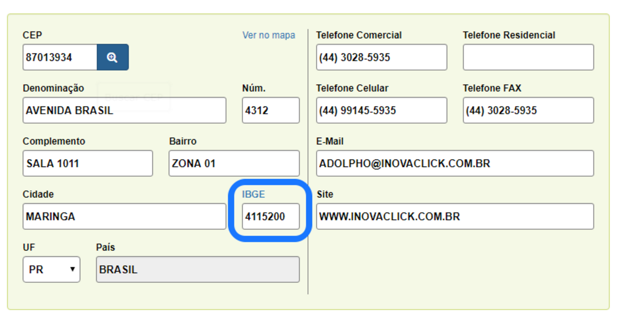 Importante lembrar que, ao inserir o CEP e, aplicar a busca automática de endereço, assim automaticamente o campo IBGE é informado, assim como os demais.