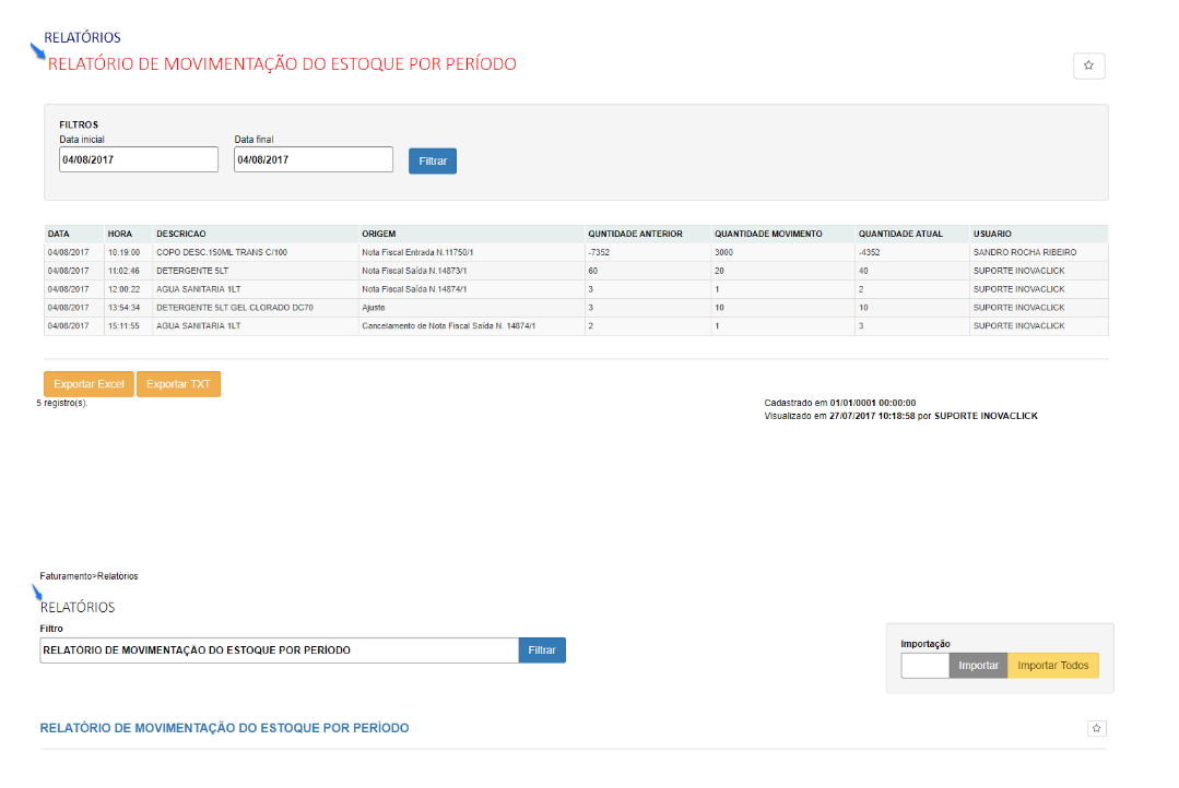 Nova implementação, relatório de movimentação de estoque por período, no módulo faturamento em relatórios.