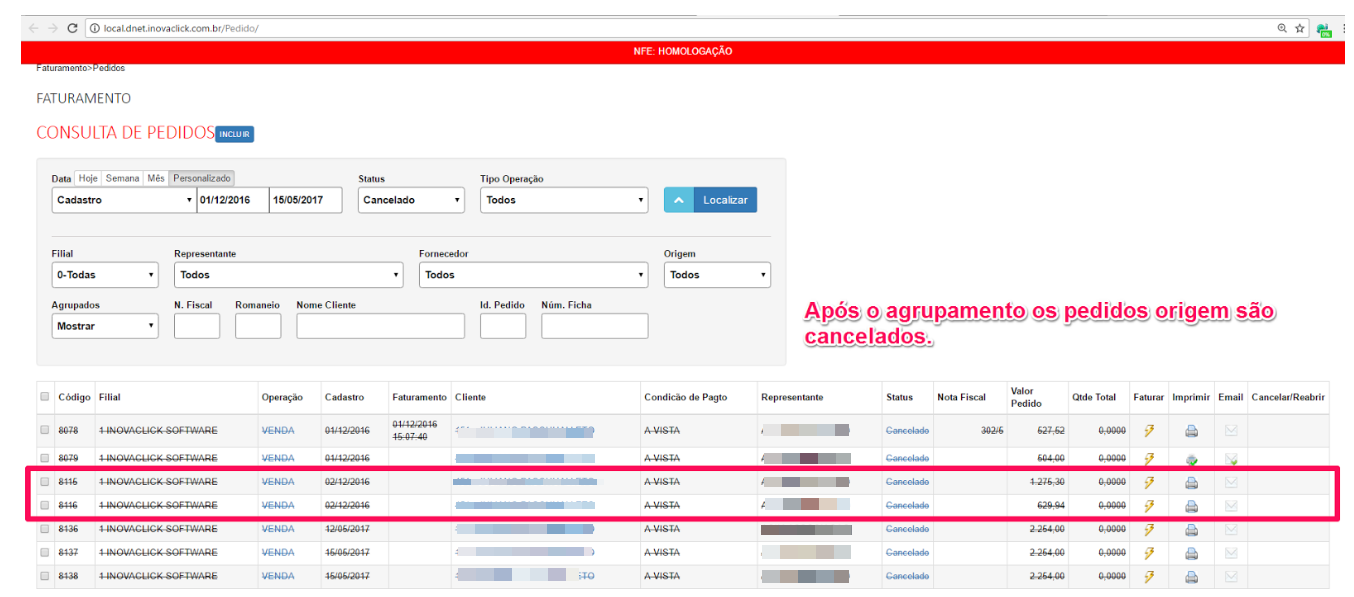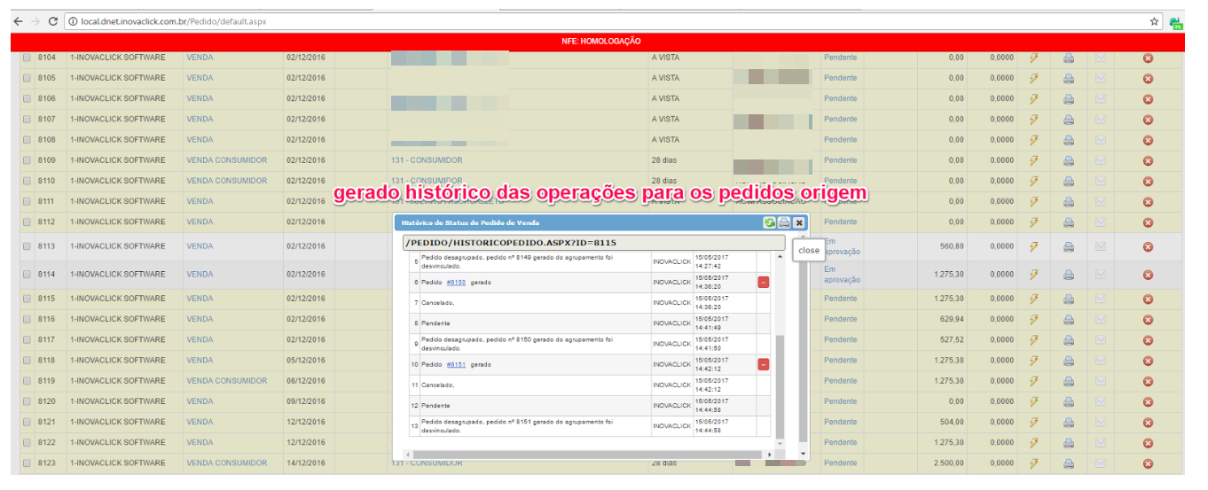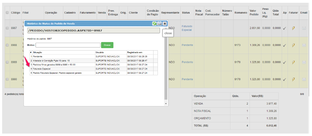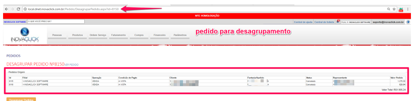 Assim, foi implementado a possibilidade de estornar o pedido pai, sendo possível alteração. Ao estornar o pedido pai, os pedidos filhos são cancelados, enquanto estes estiverem pendentes. Caso foi faturado um dos pedidos filho, necessário cancelar e, posterior estornar o pedido pai.