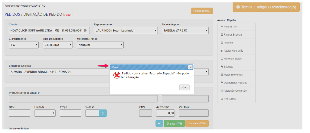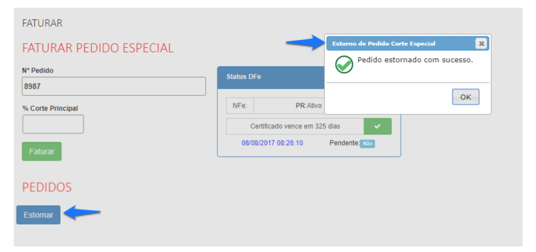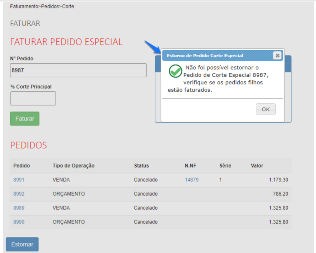 Portanto, melhoria no aplicativo faturamento especial, possibilidade de estornar o pedido pai para proceder qualquer alteração.