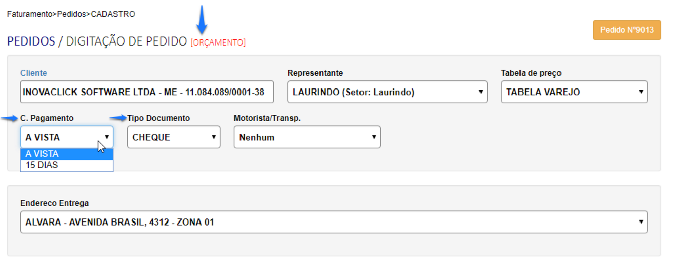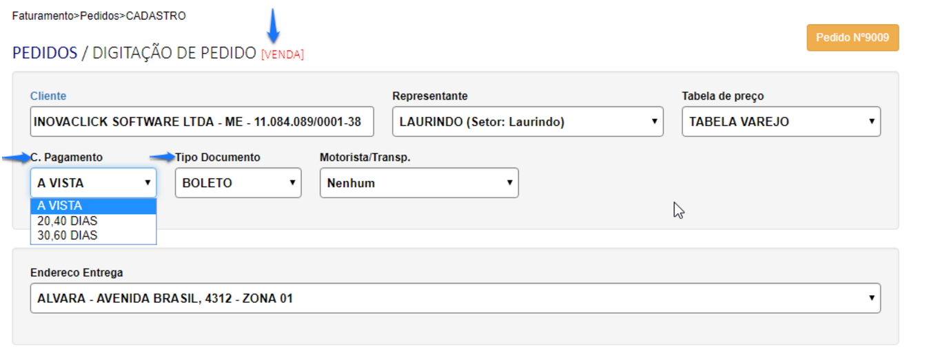 Dessa forma, os pedidos somente poderão ser incluídos de acordo com as condições de pagamento e tipo de documento, de cada operação.