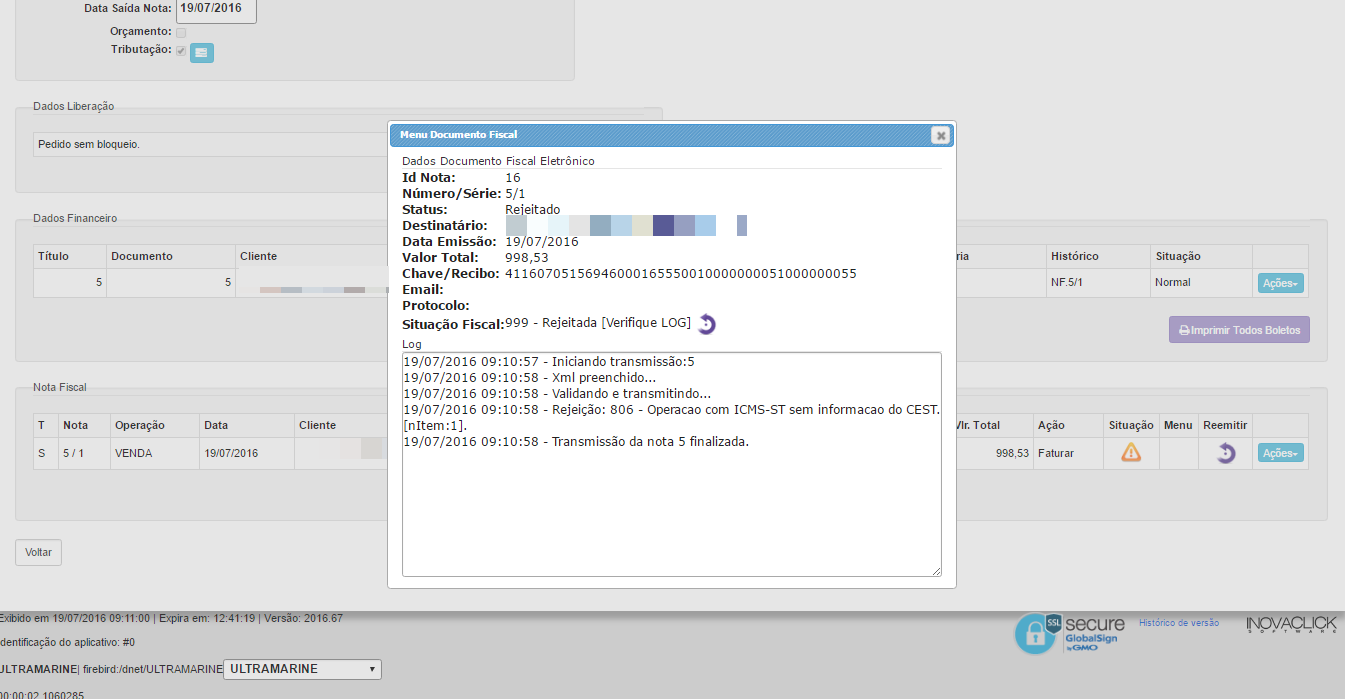 19/07/2016 09:10:58 - Validando e transmitindo...
