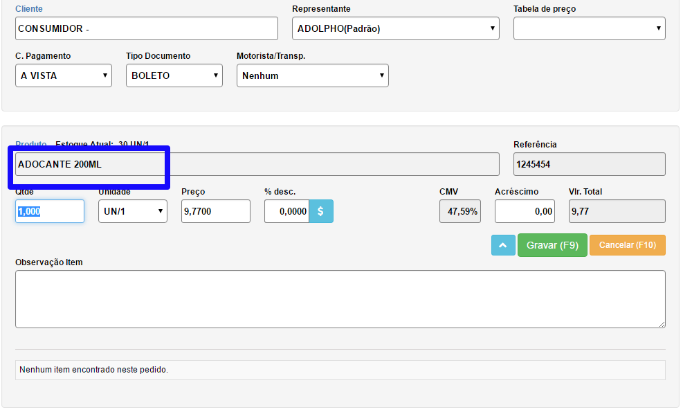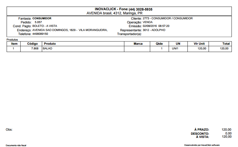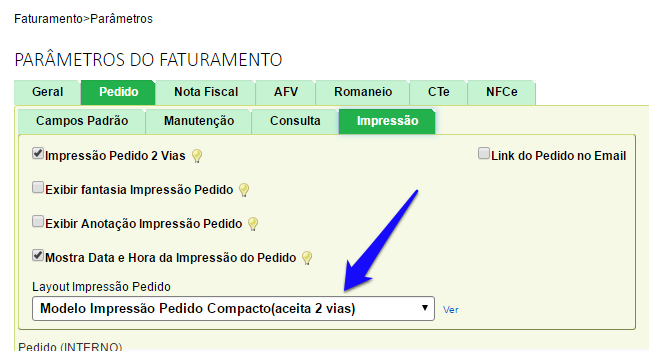 8. Novo modelo de impressão do pedido de venda, onde é ajustado conforme a quantidade de produtos (Faturamento - Parâmetros - Pedido - Impressão - Modelo Impressão Compacto - aceita 2 vias)