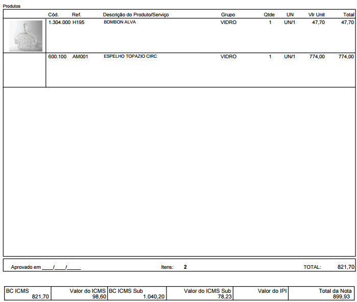 7. Novo modelo de impressão do pedido de venda com a foto do produto e a simulação da ST.(Faturamento - Parâmetros - Pedido - Impressão - Modelo Importação/Exportação)