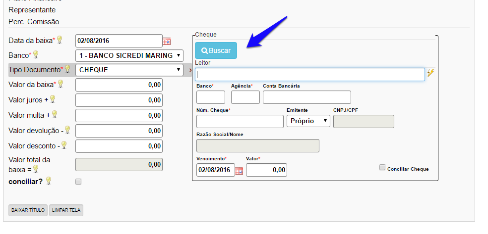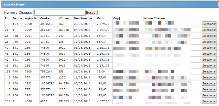 5. Corrigida a tela de consulta de cheques na baixa de títulos financeiro.(Financeiro - Títulos Financeiro - Lista - Ações - Baixar)