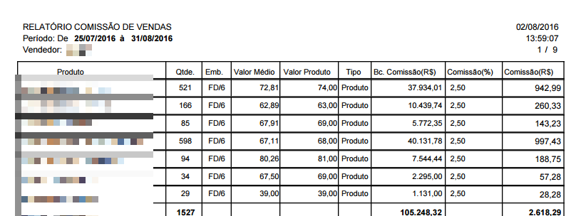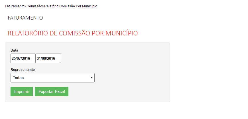3. Novo relatório de comissão por cidade/produto.(Faturamento - Comissão - Relatório Comissão por Município)
