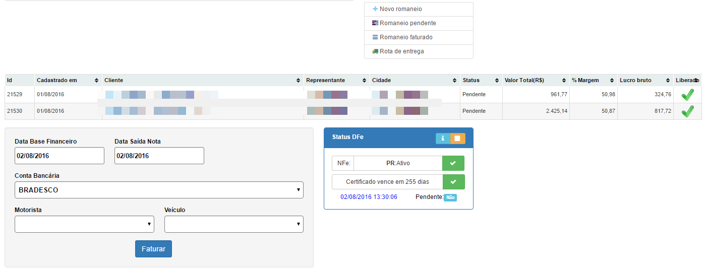 4. Correção no romaneio pendente mesmo com o pedido bloqueado deixava faturar.(Faturamento - Romaneio Pendente - Faturar)