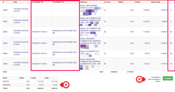 Correção no relatório de extrato bancário, fica o histórico de login de “conciliação em” e “conciliado por”, assim sendo, permite identificar qual usuário e horário realizou a operação conciliação bancária.