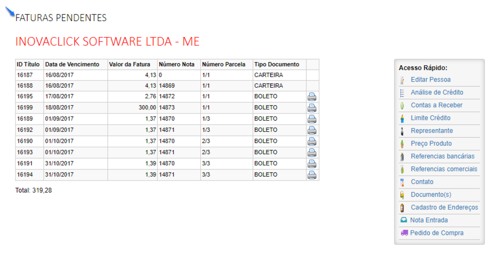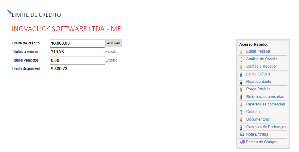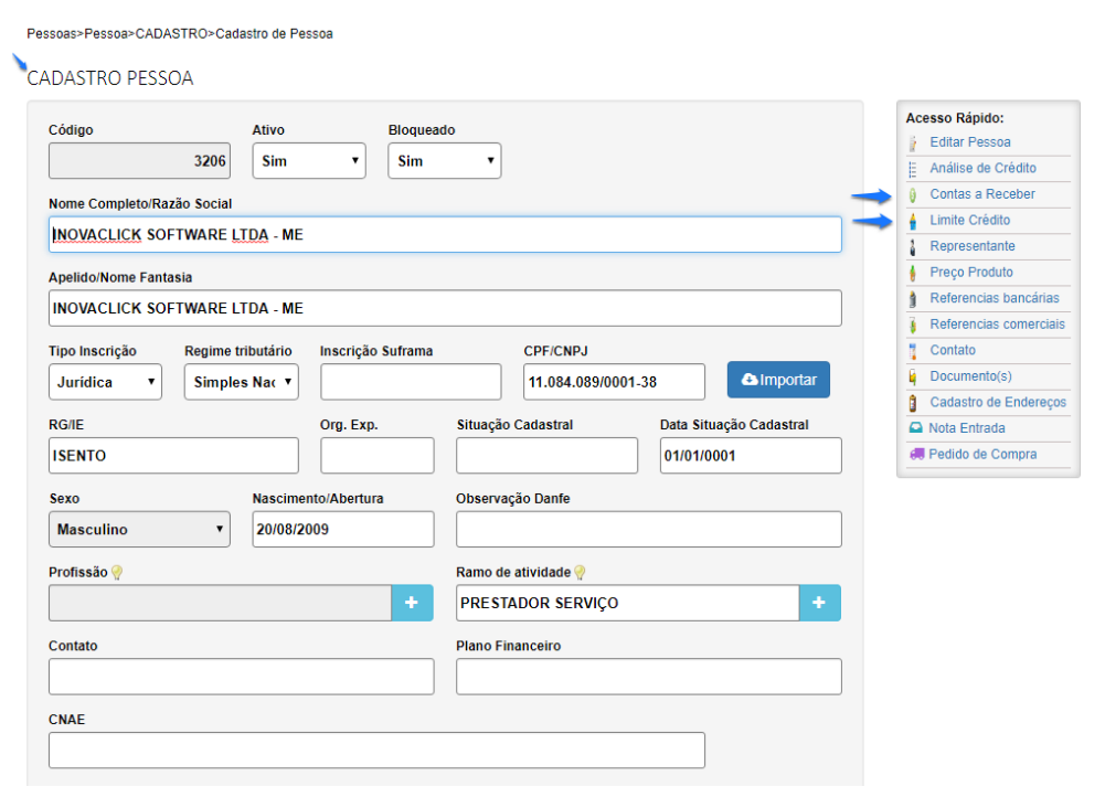 Correção acesso limite de crédito e contas a receber. No cadastro de pessoas, foram realizadas as correções nos aplicativos limite de crédito e contas a receber. Assim, é possível realizar a consulta de contas a receber e, também alterar o limite de crédito. Referente a OS 19965.