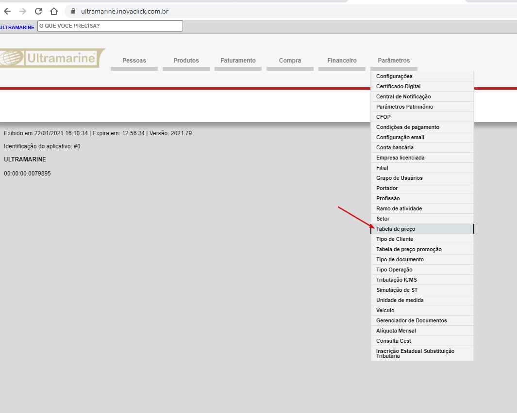 Acesse o DNET /aba parâmetros/ Tabela de preço: