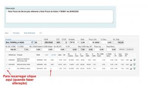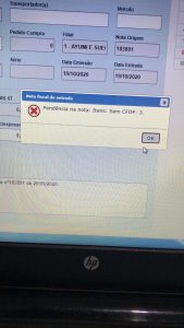 Imagem do erro ao importar a nota de entrada de uma devolução de venda: