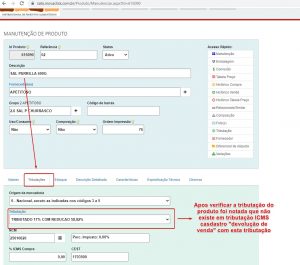 1° Verifique a tributação do produto (encontre o produto e clique em tributação):
